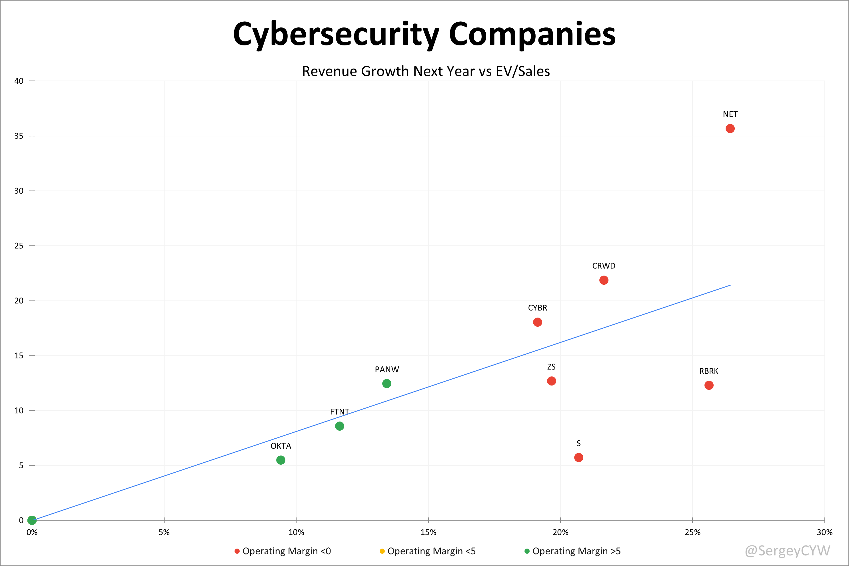 Analysts forecast $NET revenue growth at +28.1% in 2025 and +26.4% in 2026, the highest among the companies in Cybersecurity space. Considering the 2026 revenue forecast, Cloudflare’s valuation based on the EV/S multiple trades at a premium compared to other companies in the cybersecurity sector.