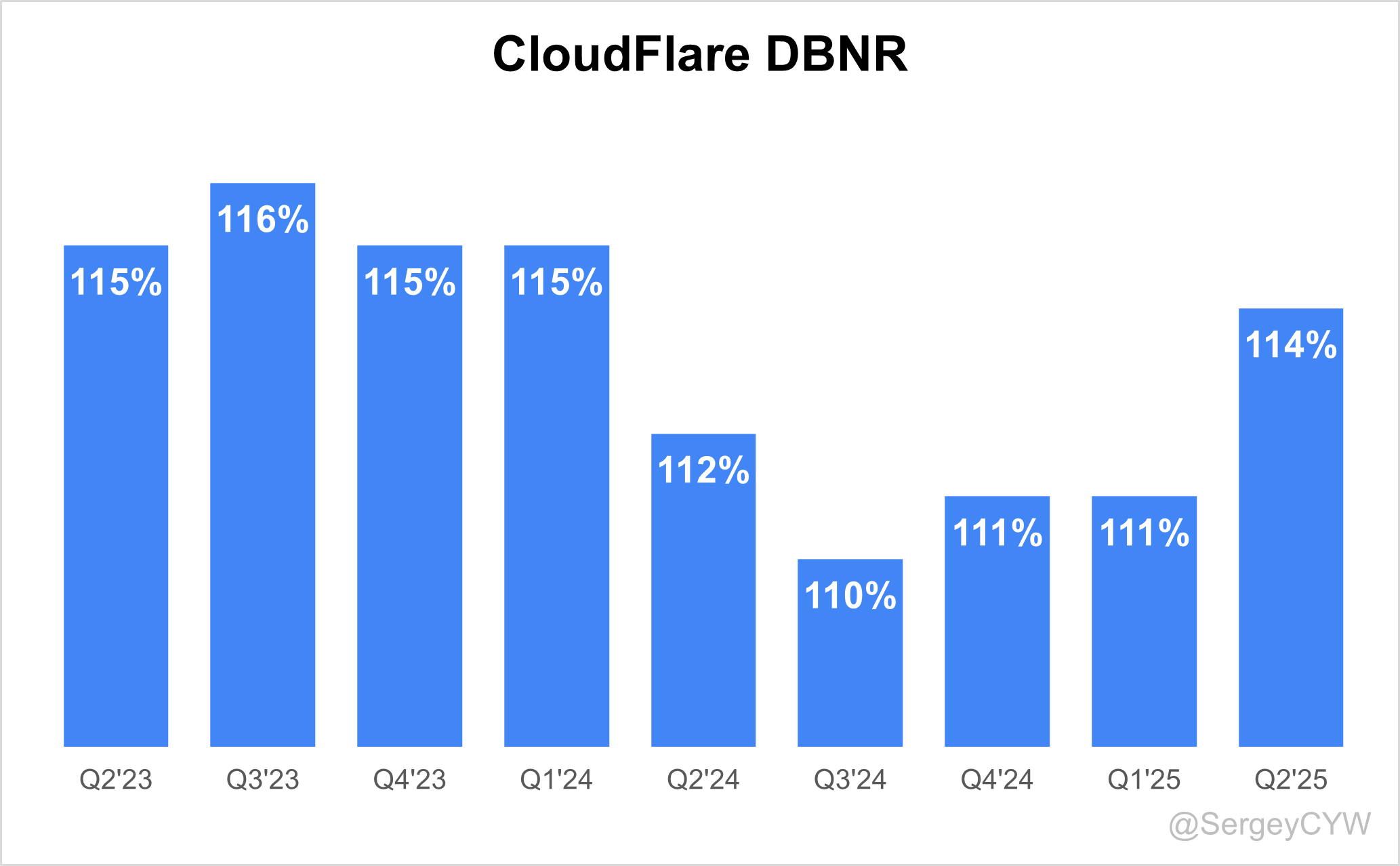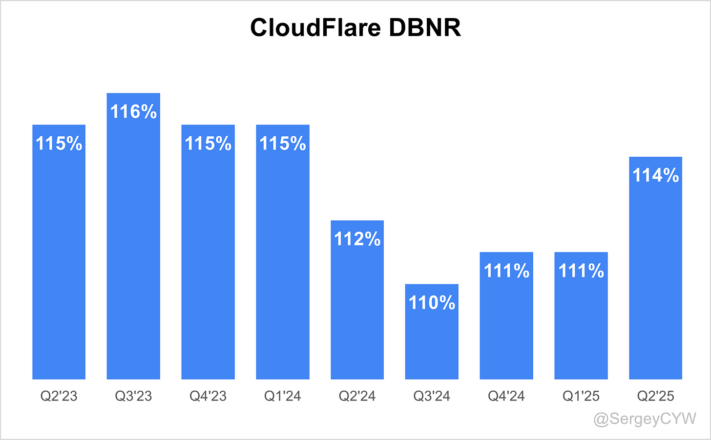However, in Q2 2025, Cloudflare’s DBNR (Dollar-Based Net Retention) increased to 114%, recovering almost to last year’s level.