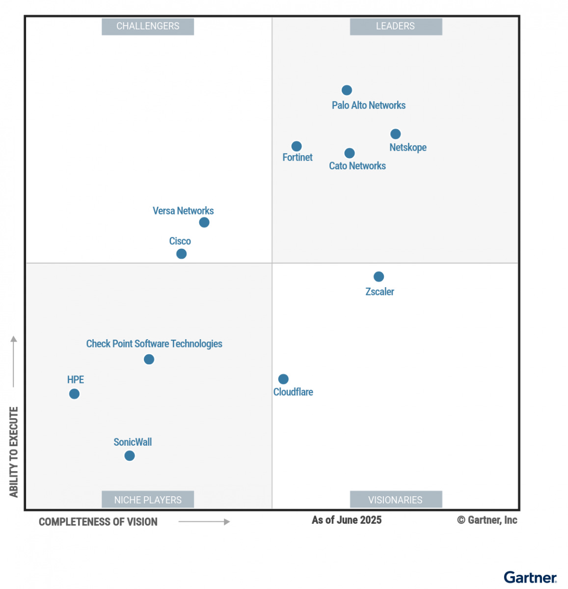 Cloudflare has been recognized by Gartner in the 2025 Gartner Magic Quadrant for Security Service Edge (SSE). This marks the third consecutive year that Cloudflare has been included in this specific report, placing them among an elite group of only nine vendors acknowledged in 2025.