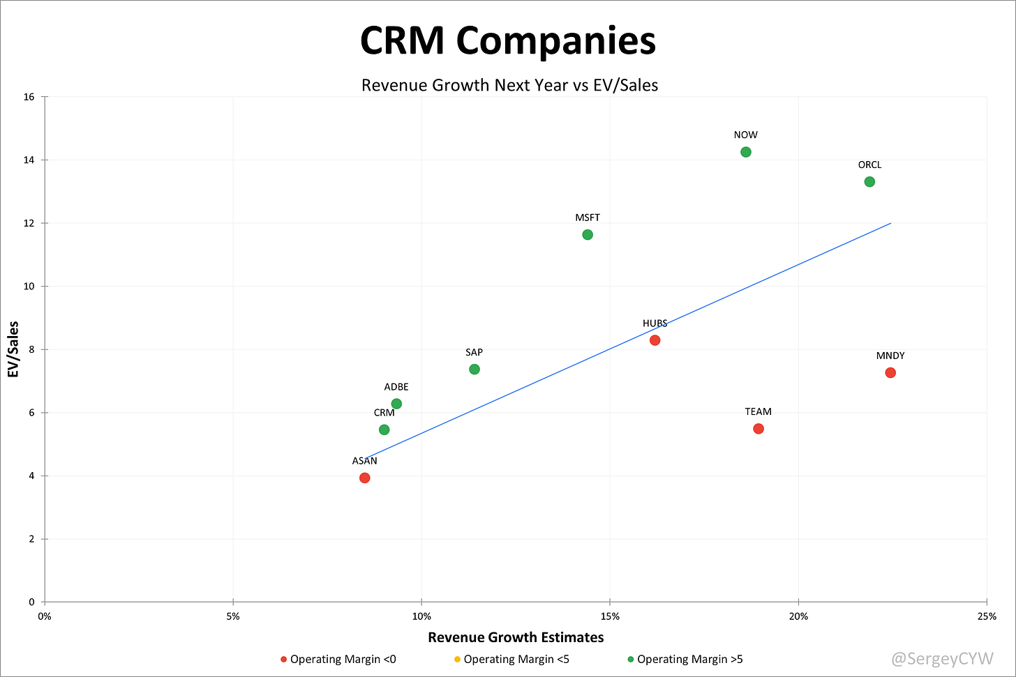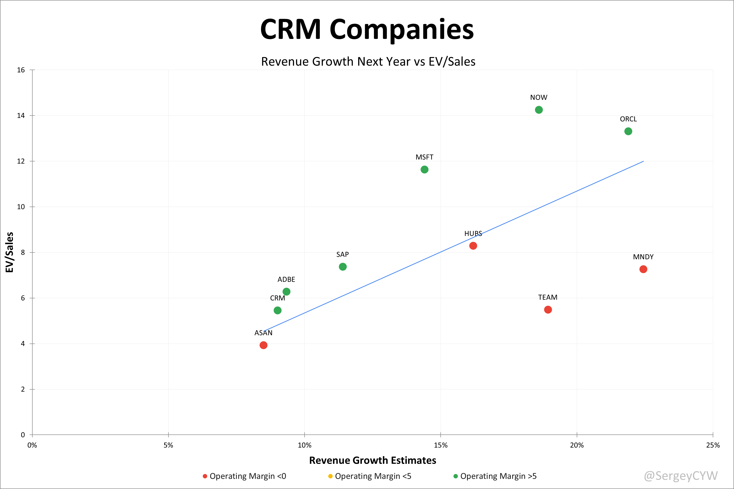 Analysts forecast +28.8% revenue growth for $MNDY in 2025 and +22.4% in 2026. Given these projections, the EV/Sales valuation appears undervalued relative to other CRM companies, especially considering $MNDY has the highest expected revenue growth in the CRM sector.