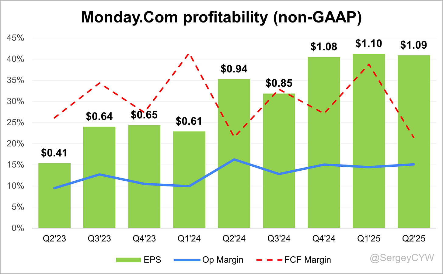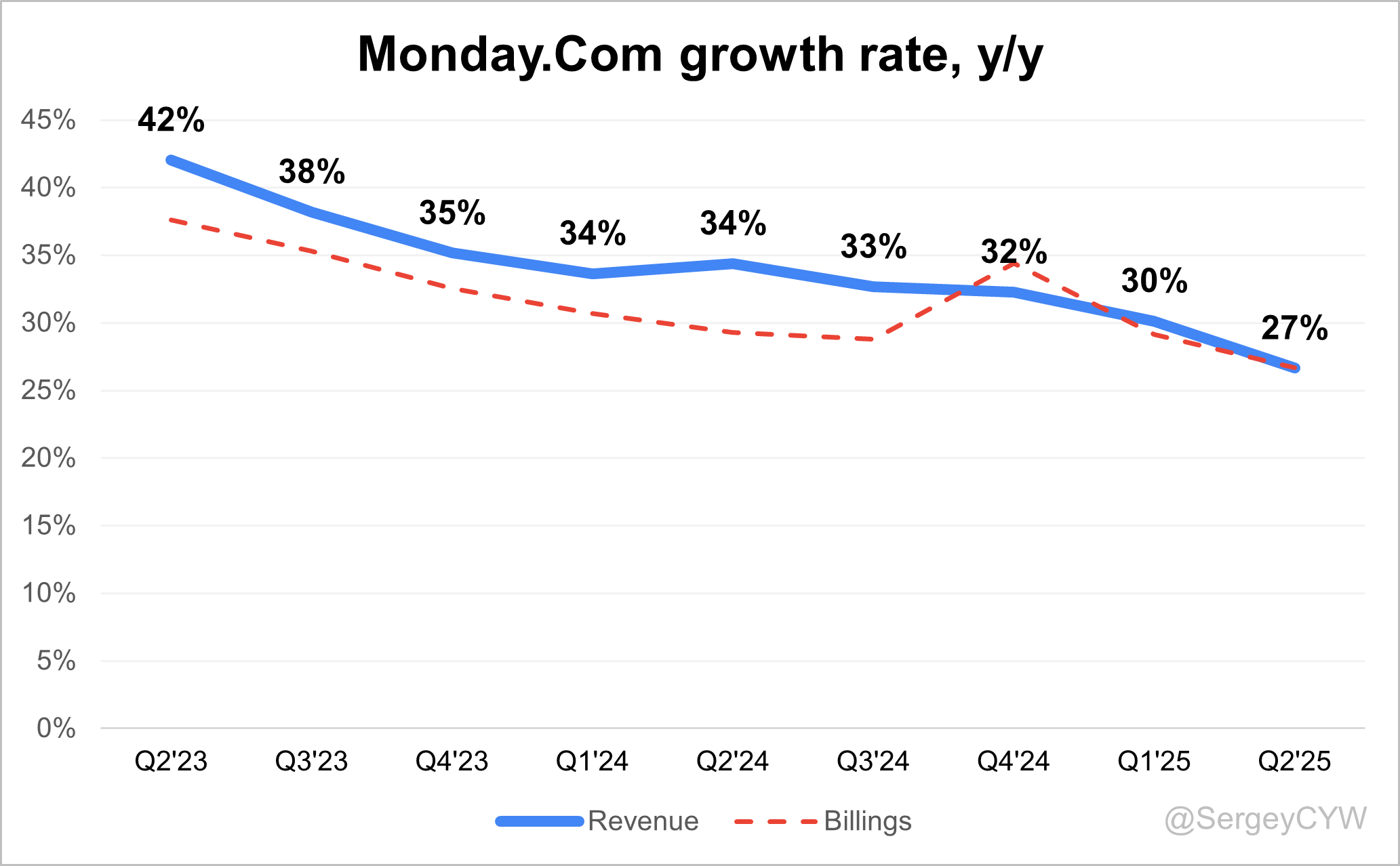 $MNDY Monday’s revenue growth continued to slow, reaching +26.6% YoY, but remains at a strong level.