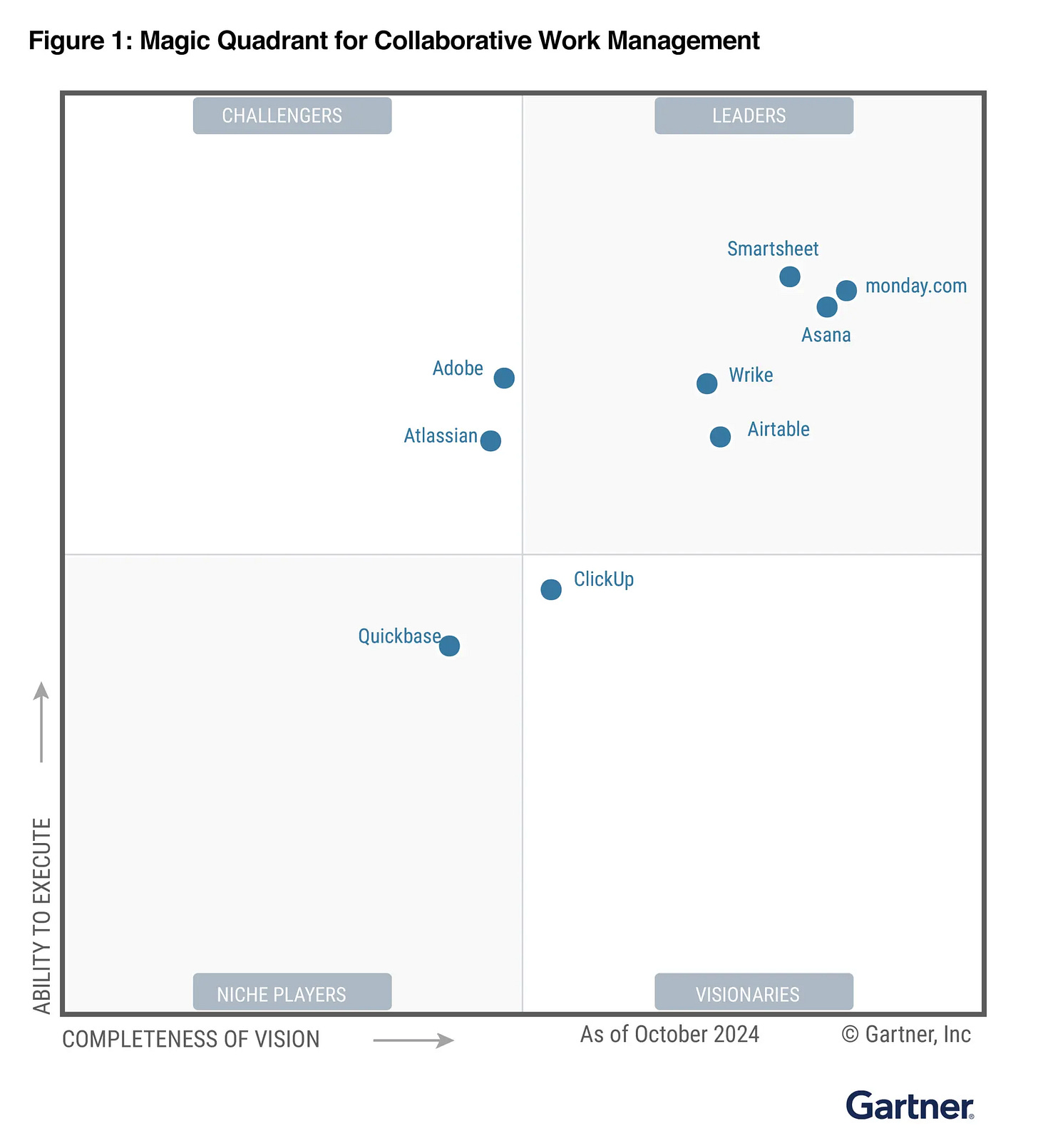 Monday has established itself as a Leader in the Gartner Magic Quadrant for Collaborative Work Management for the second consecutive year in 2024. The company achieved the furthest position in ‘Completeness of Vision’ among all evaluated vendors, demonstrating its strategic market positioning and product innovation capabilities.