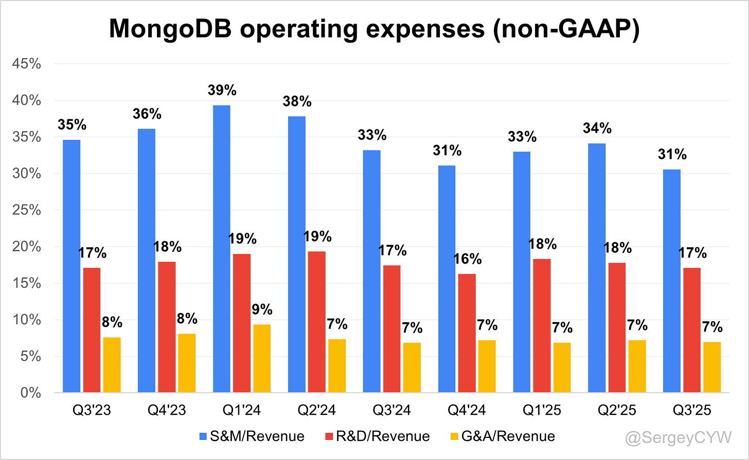 • S&M expense ratio 30.6% (-2.6 pps YoY) indicates improved go-to-market efficiency.