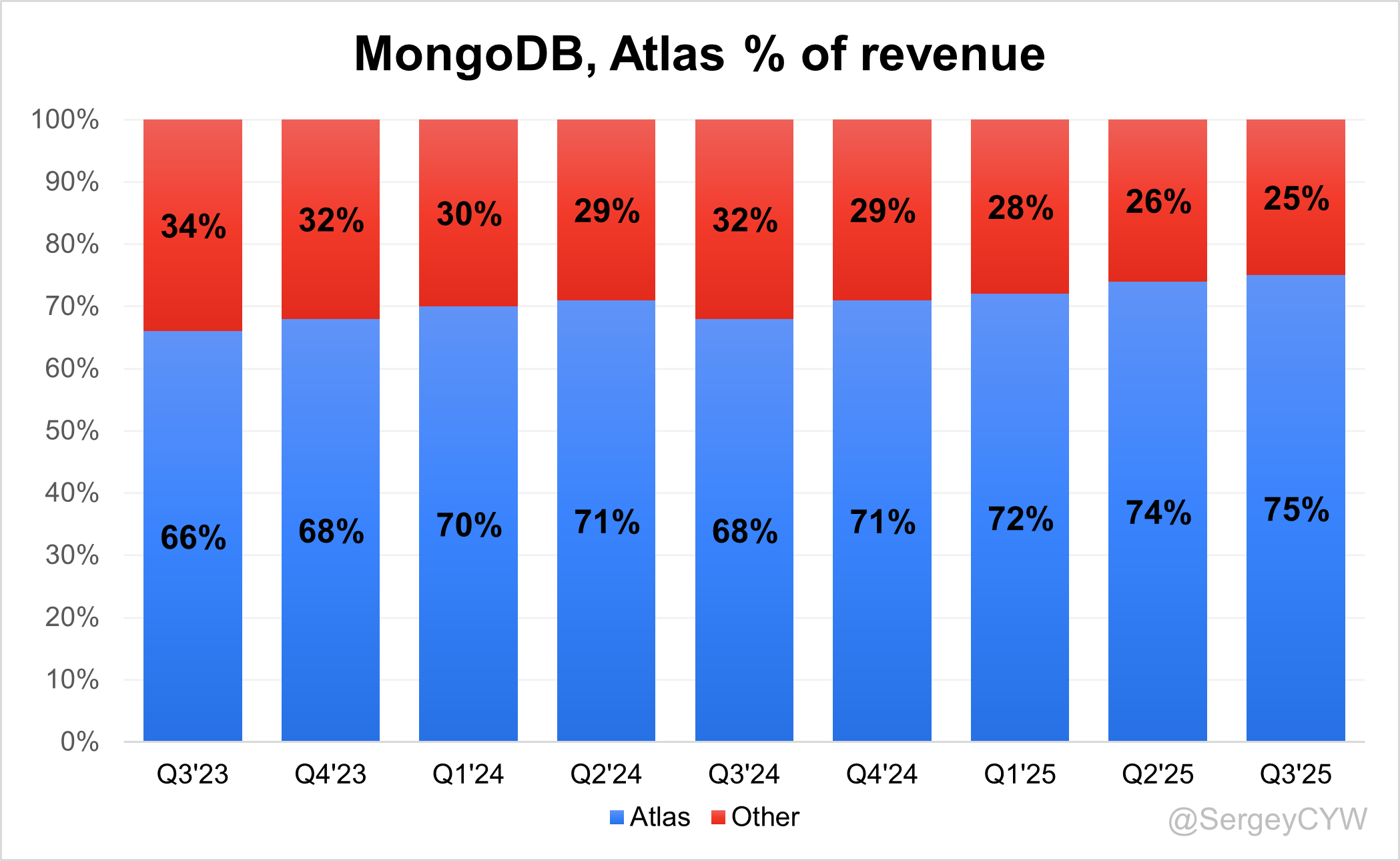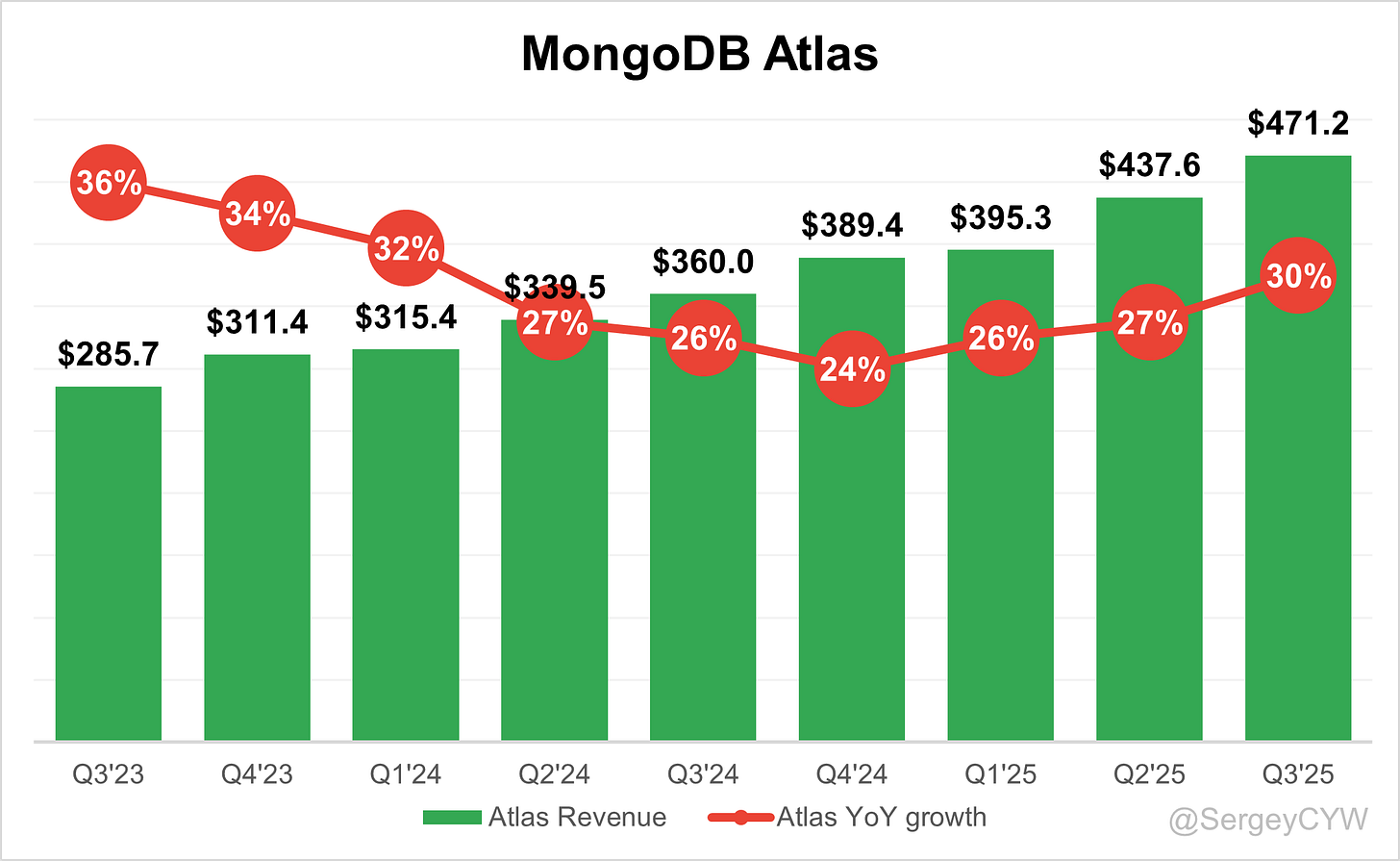 • Atlas revenue $471M (+30% YoY) now forms 75% of total revenue, driven by strong enterprise and EMEA adoption.