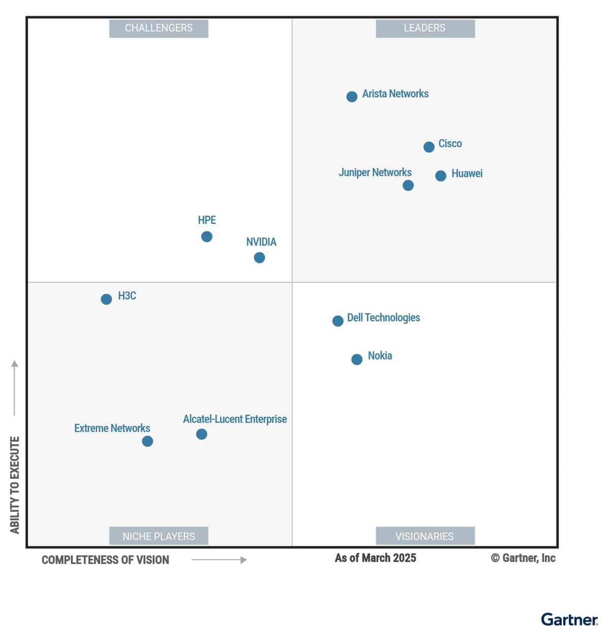 Nvidia recognized as a Challenger in the 2025 Magic Quadrant for Data Center Switching. Nvidia continues to expand its networking product line, introducing Spectrum-XGS Ethernet in August 2025 to connect distributed data centers into giga-scale AI super-factories, pushing the boundaries of datacenter switching for AI workloads. Industry analysts noted Nvidia’s rapid ascent following its Mellanox acquisition, quickly overtaking Arista and Cisco as the largest datacenter Ethernet switch vendor by revenue in Q2 2025.