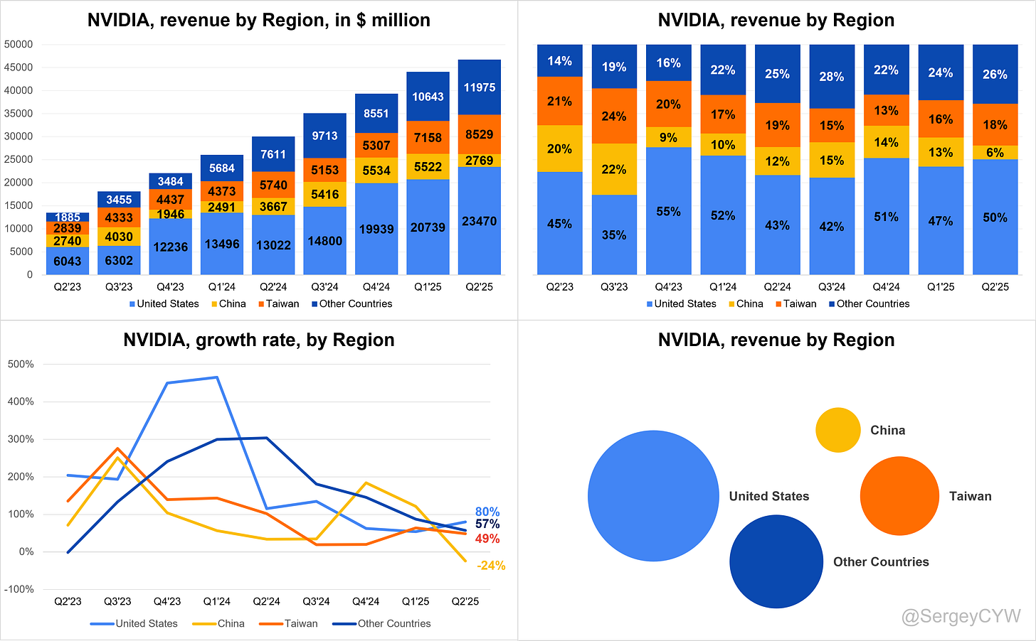 The United States is $NVDA Nvidia’s largest market, accounting for 50% of total revenue, with growth accelerating to +80% YoY in Q2.