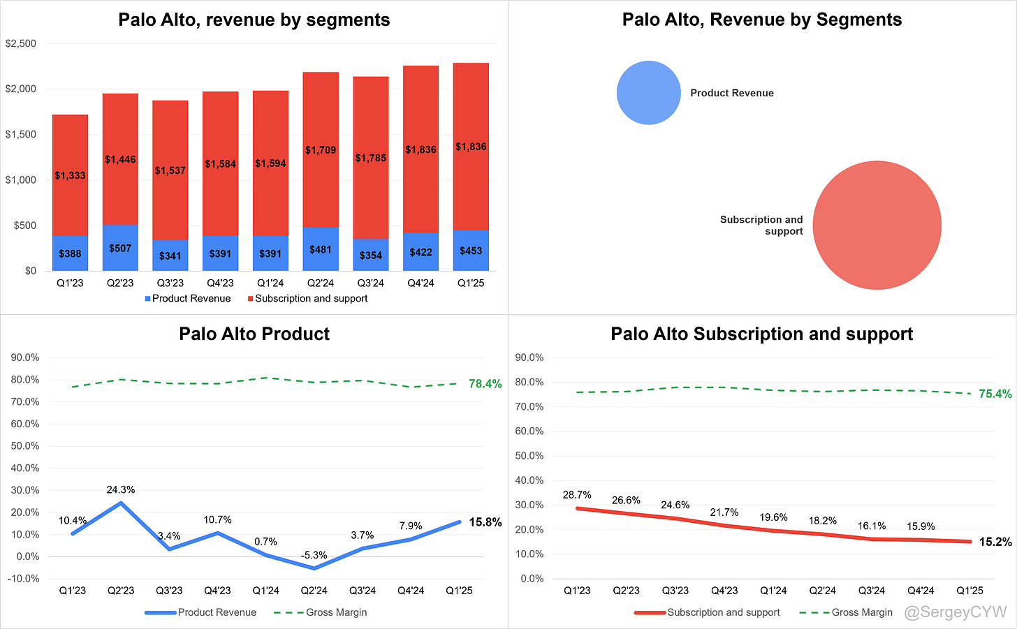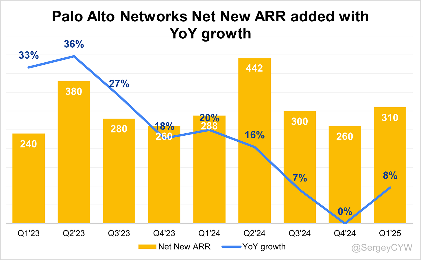 Palo Alto $PANW added $310 million in net new NGS ARR in Q1 FY2025, reflecting +8% YoY growth.