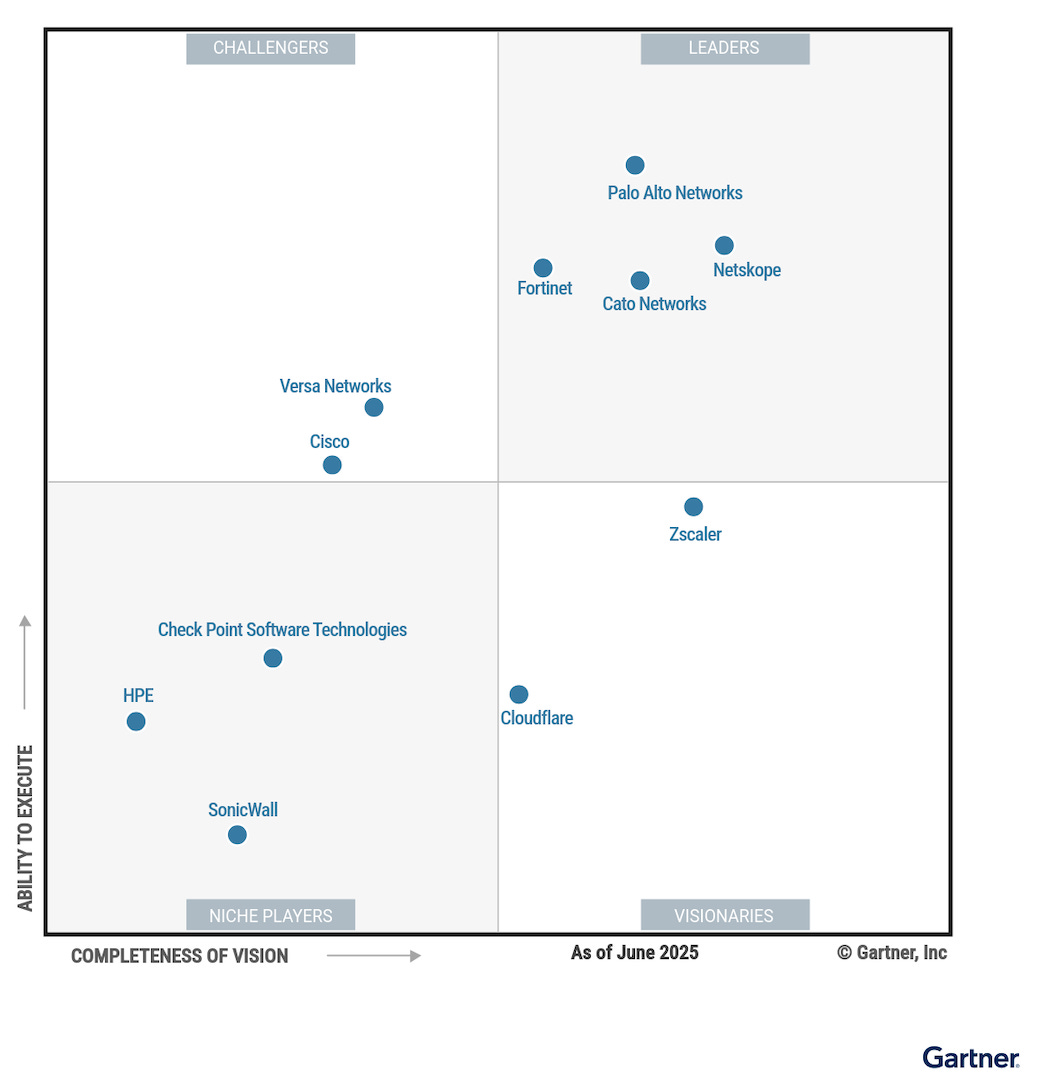 Recognized as a Leader in all three major Gartner Magic Quadrant reports—SSE (2025), Single-Vendor SASE (2024), and SD-WAN (2024)—Palo Alto Networks demonstrates sustained innovation in unified cloud security, precision AI, and threat intelligence.