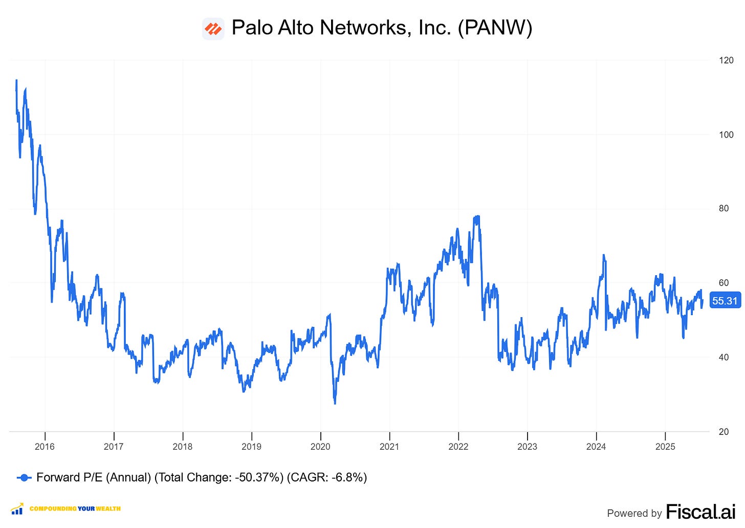 $PANW Palo Alto trades at a Forward P/E of 55.3, with a revenue growth of 15.3% YoY in the last quarter.