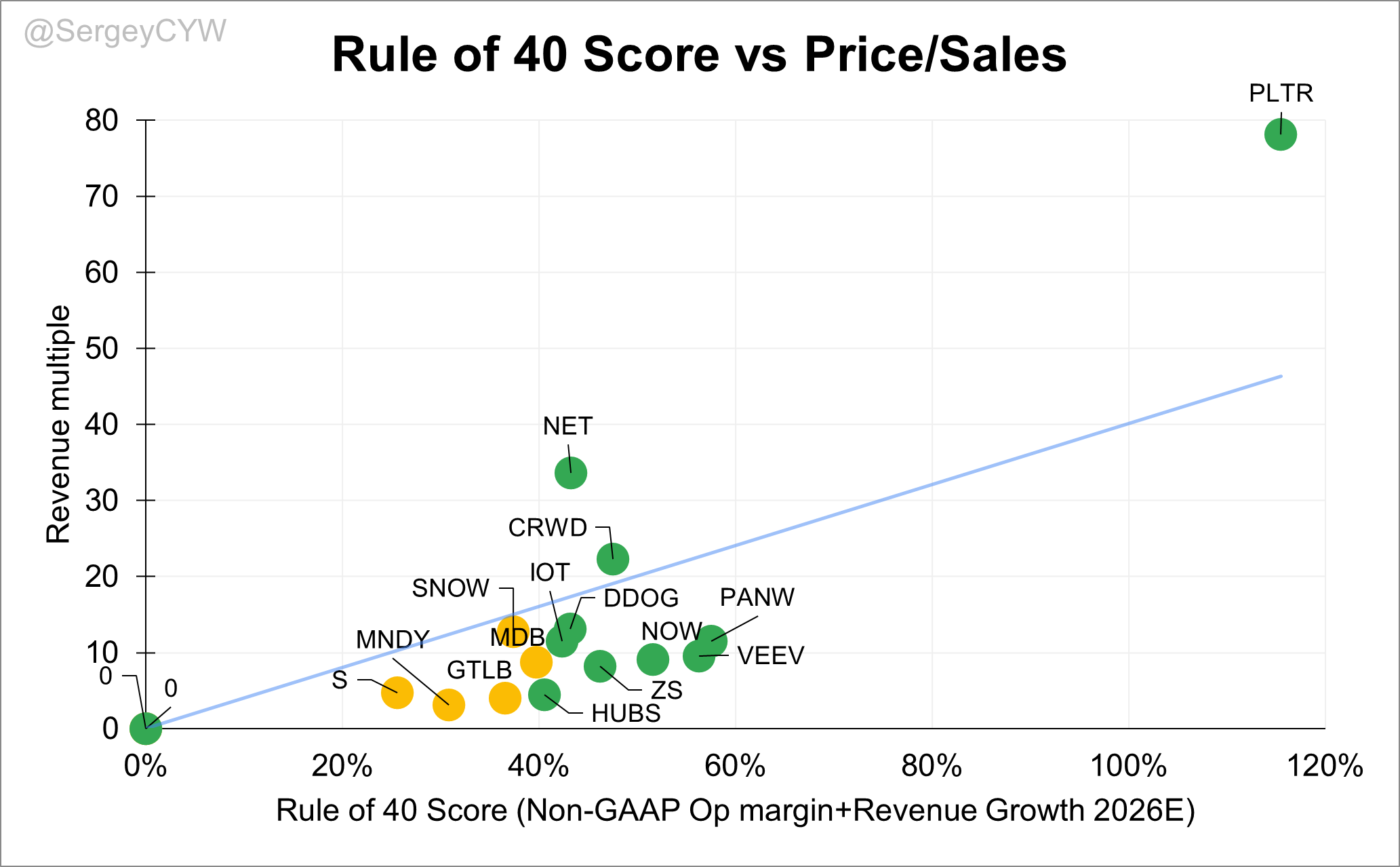 🟢 Rule of 40 Score > 40: $IOT, $NET, $DDOG, $VEEV, $ZS, $PANW, $PLTR
