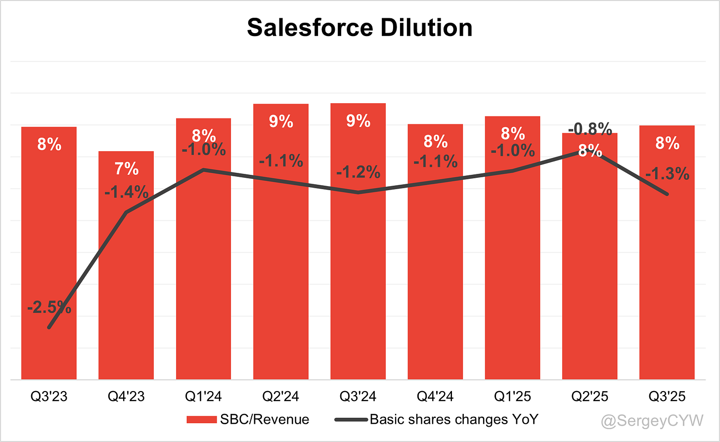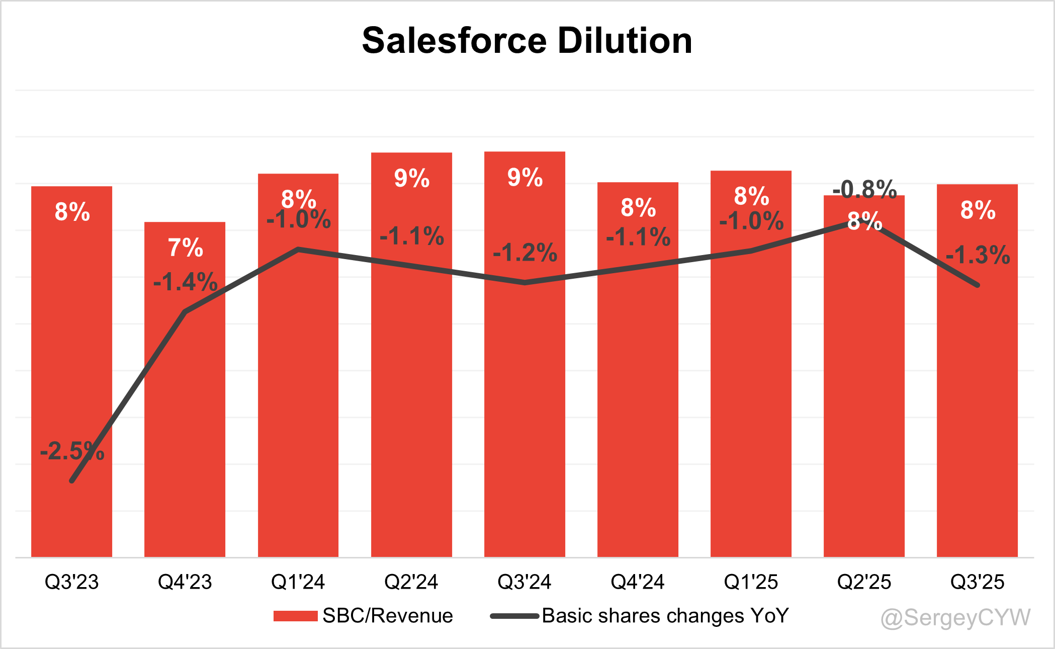 Stock-based compensation rose modestly to 8% of revenue (+0.2 pps QoQ).