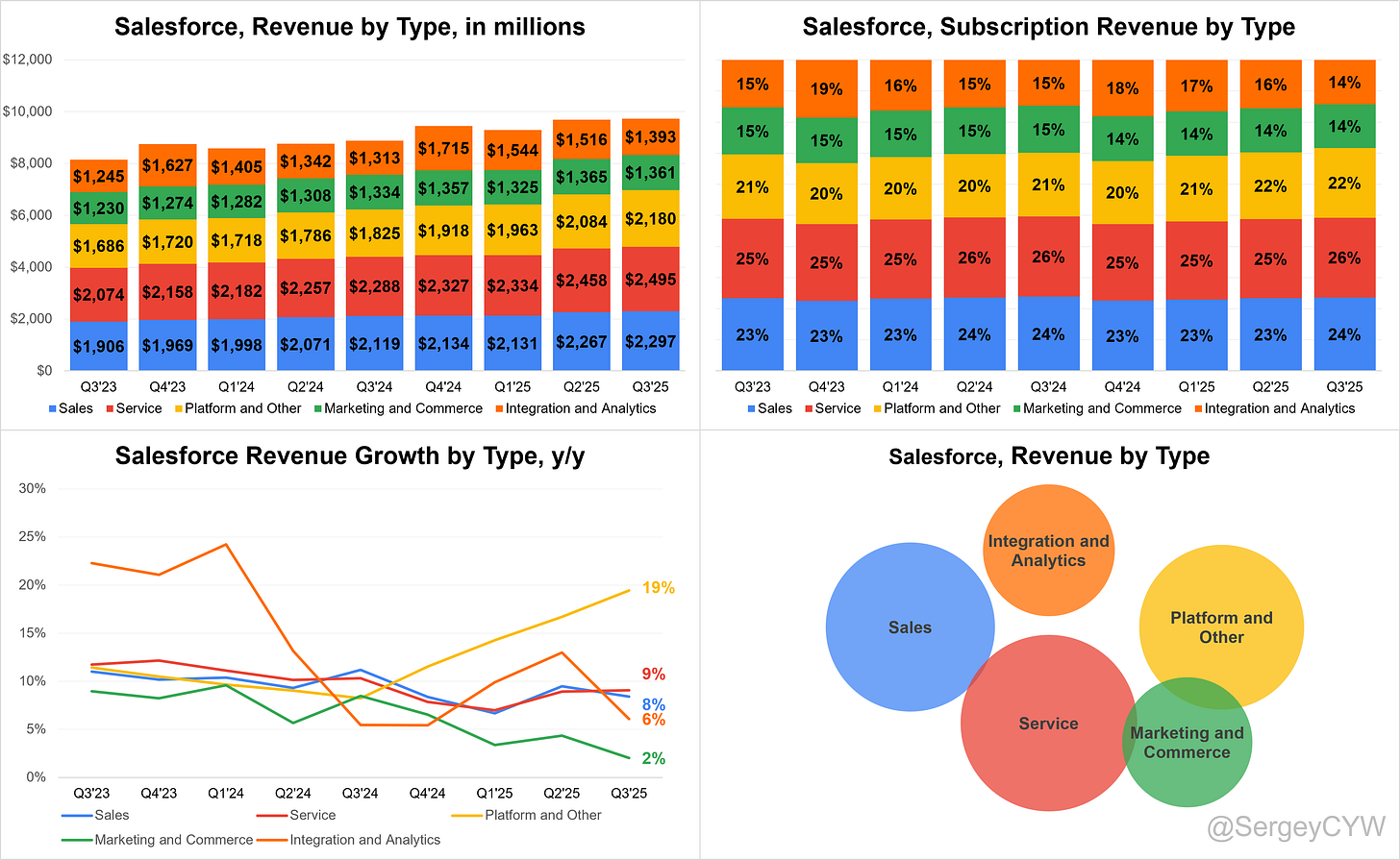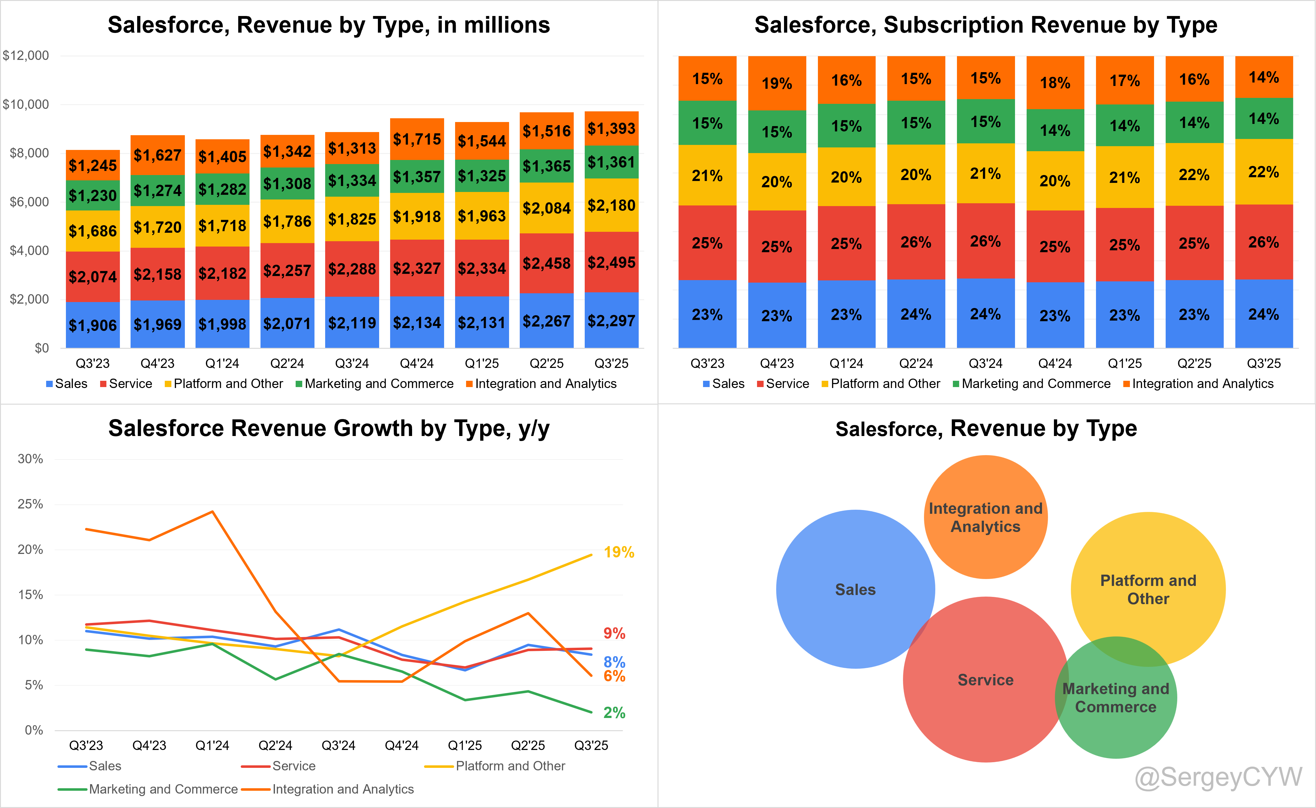 Platform & Other revenue surged +19.5% YoY to $2.18B, driven by Data 360 and Agentforce expansion.