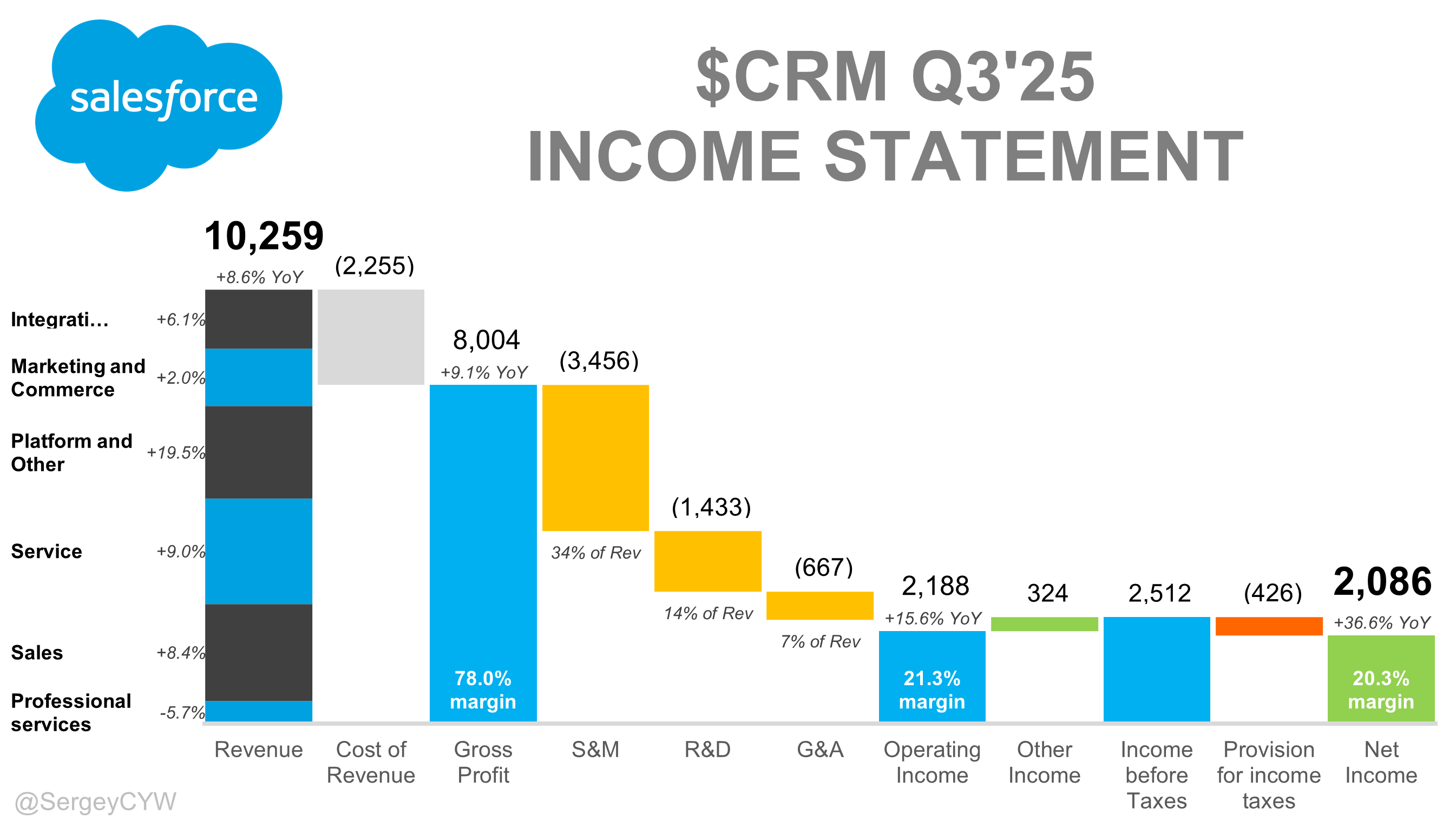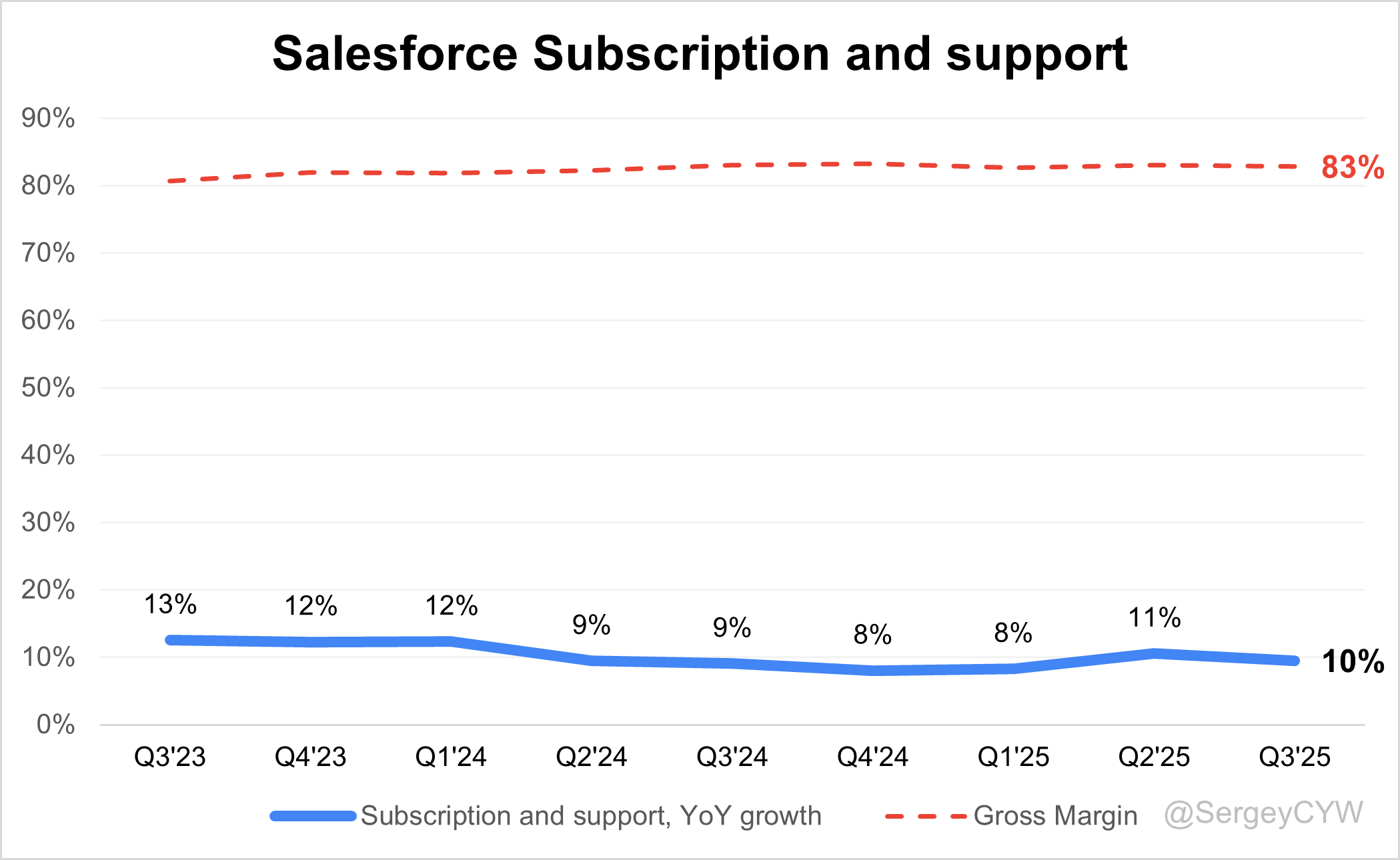 ↗️Subscription and support $9,726M rev (+9.5% YoY, 82.9% Gross Margin)