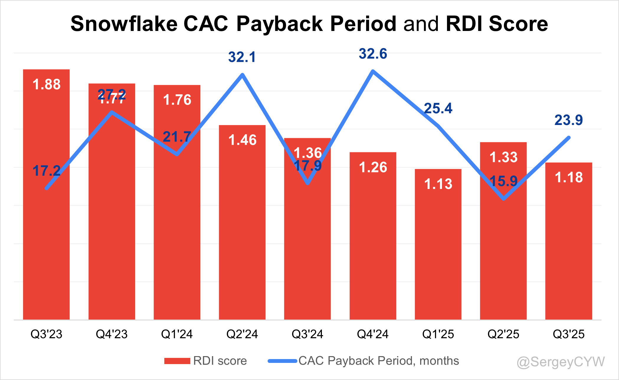 ↗️CAC* Payback Period 23.9 Months (+6.0 YoY)🟡