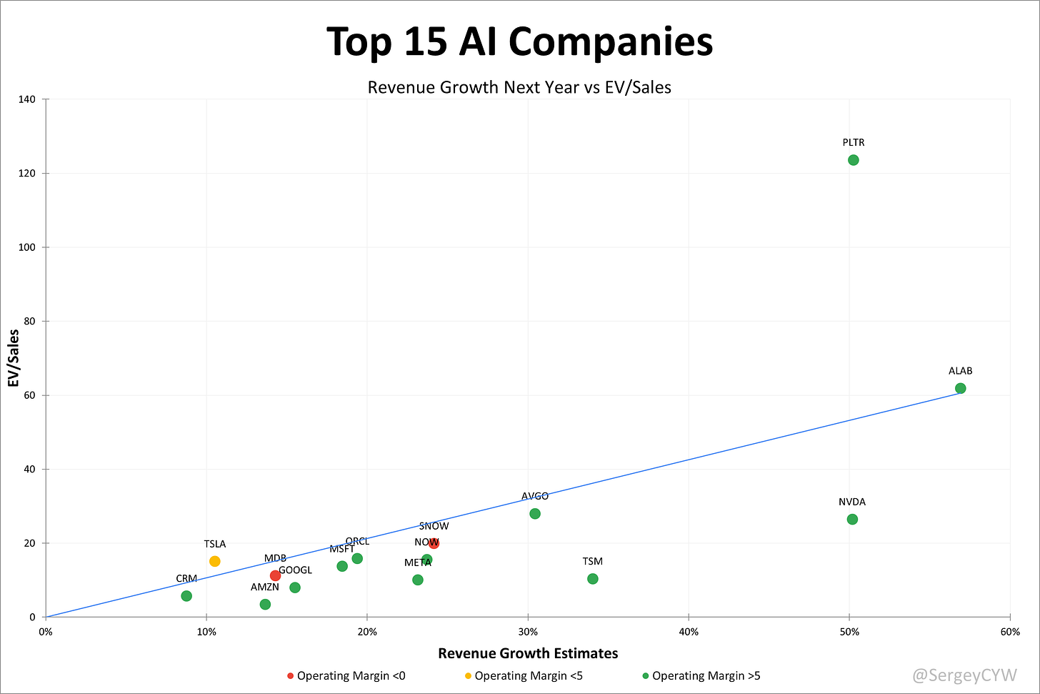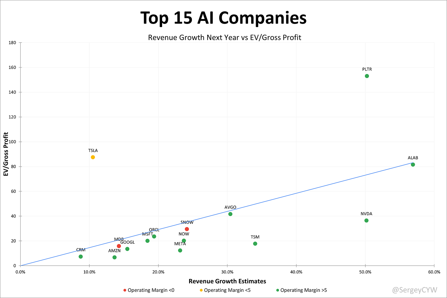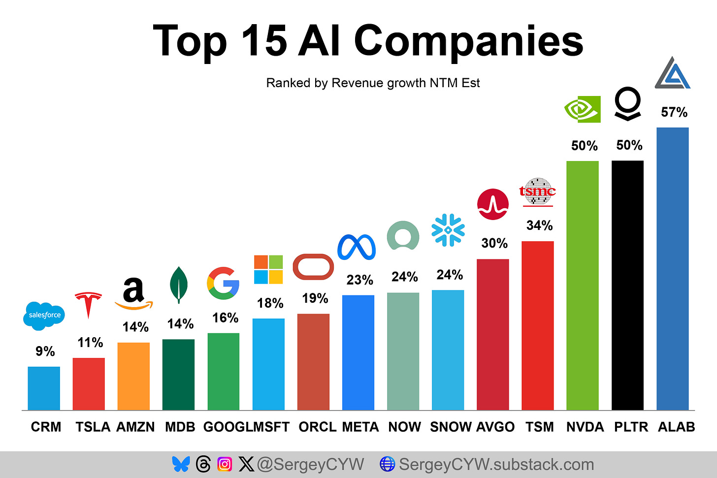 NVIDIA (NVDA): The clear market leader with +50% NTM growth and dominance in GPU infrastructure.