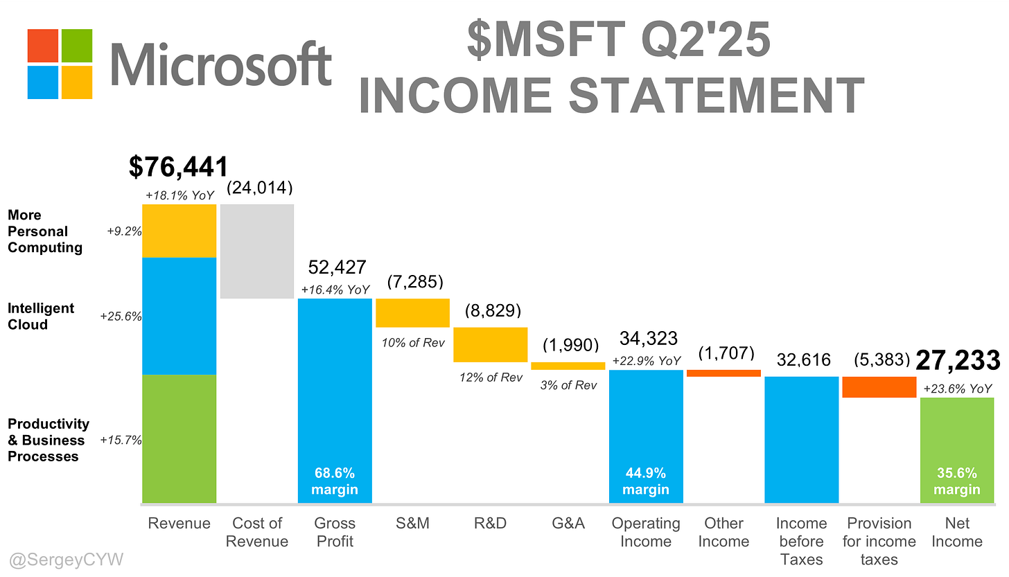 Microsoft holds twin leadership positions: Azure for infrastructure and Copilot for applications. Foundry APIs processed over 500T tokens in FY 2025, up 7×, pointing to platform adoption beyond flagship apps. More than 2 GW of new data center capacity came online over twelve months, with every Azure region redesigned AI-first and liquid-cooled. Capex guide for Q1 FY2026 reaches a record $30B. A consumer-grade Copilot Premium expands the addressable base. Analysts see $10B+ in annualized AI revenue by 2026, with AI adding 3–4pp incremental growth to Azure. Distribution remains unmatched: 400M+ active Office users, deep entrenchment in enterprise security, and strong GitHub Copilot and Dynamics 365 traction. CEO Satya Nadella frames the opportunity succinctly: “Cloud and AI is the driving force of business transformation across every industry and sector.” With $80B planned AI-related data center investments for FY 2025, Microsoft is building the pipes and the products, aiming to convert usage into durable, high-margin cash flows.