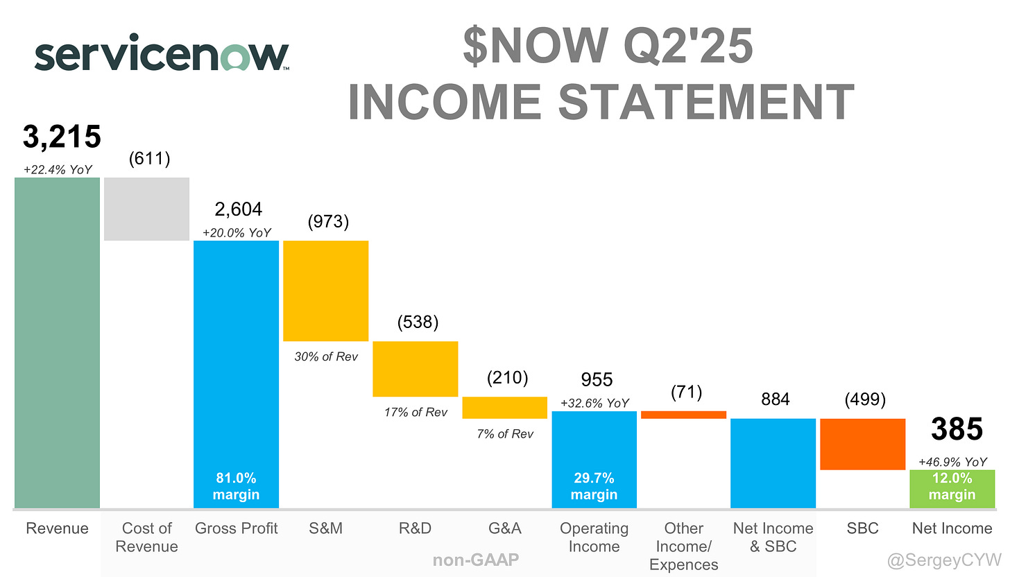 ServiceNow positions itself as the AI platform for business transformation. Q2 2025 revenue grew 22.5%, powered by workflow AI and enterprise adoption of Now Assist and Pro Plus. Management closed 21 deals with five or more Now Assist products; AI Pro Plus featured across ITSM, CSM, and HR rose 50%+ sequentially. Plus appeared in 18 of the top 20 deals, while Workflow Data Fabric featured in 17 of the top 20. The AI Control Tower for agent orchestration beat full-year net new ACV targets within 60 days. Customers such as Adobe, Aptiv, Visa, EY, ExxonMobil, and Standard Chartered use ServiceNow AI to compress cycle times and raise service quality. The Zurich platform and AI Experience unveiled in Oct 2025 bring multi-agent development, enterprise-grade security, and autonomous workflows into one interface. Voice and Web Agents automate multistep tasks; Data Explorer enables natural-language insight discovery; AI Lens accelerates capture from dashboards. Product breadth, deep workflow roots, and integration with Microsoft and NVIDIA strengthen the flywheel. Watch unit economics on AI add-ons and expansion within existing accounts as the platform matures into an “agentic operating system.”
